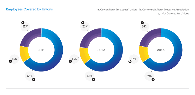 Over 80% of the Bank’s permanent workforce has membership in either one of the two employee associations. The continuous and cordial engagement with the two employee associations has brought about many benefits to both employees and the Bank and has helped reaching amicable solutions. There are no employee associations in our operations in Bangladesh.