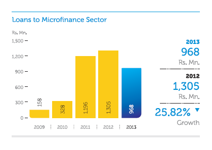 Microfinance borrowers in some parts of the country faced difficulties in repaying credit facilities because of multiple borrowings and adverse weather conditions, particularly in the middle of the year. Despite growth in performance of the agricultural sector, our microfinance portfolio recorded a slight decline in 2013.