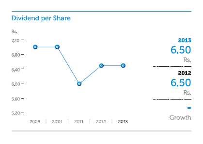 The Bank paid two interim dividends totalling to Rs. 2.50 per share to ordinary shareholders during 2013 and 2014. The Board of Directors of the Bank also recommended Rs. 4.00 per share as final dividend for 2013, Rs. 2.00 to be paid in the form of cash and the balance Rs. 2.00 to be satisfied in the form of issue and allotment of shares, similar to the payment made in 2012. Total dividend payment (paid and proposed) for the year amounts to Rs. 5,519.2. Mn. (Rs. 5,421.4 Mn. in 2012) of which Rs. 3,820.9 Mn. paid/to be paid in cash (Rs. 3,752.6 Mn. in 2012) and the balance Rs. 1,698.3 Mn. to be satisfied in the form of issue and allotment of shares (Rs. 1,668.8 Mn. in 2012). Dividend payments in the form of issuing of new shares, would strengthen the capital base of the Bank.