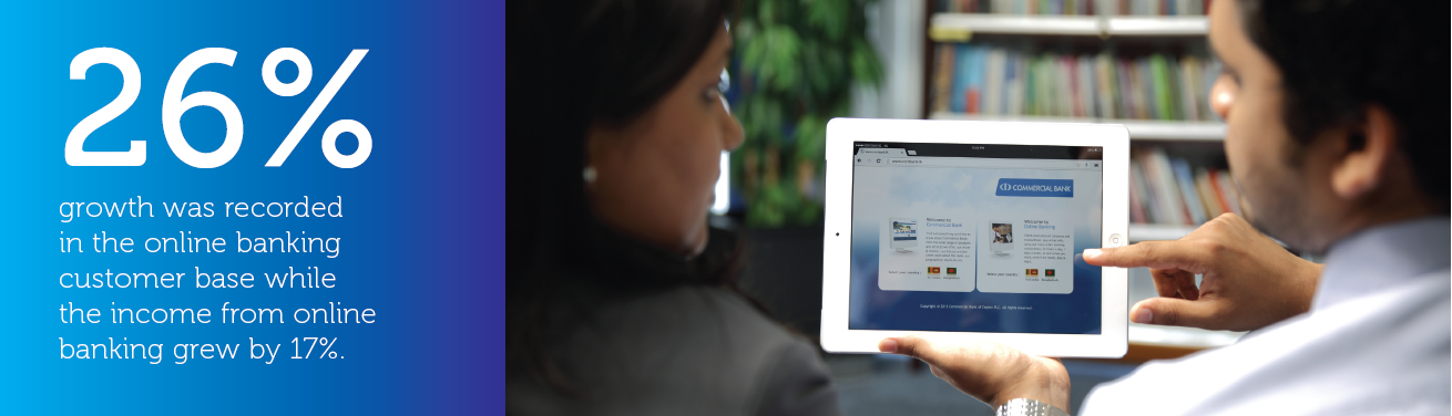 The launch of an iOS application, which provides iPhone and iPad users the ability to access Commercial Bank’s Online banking facility was the main highlight during the year. Further, the Bank’s Bangladesh operation introduced the Internet Banking personal application, developed on Microsoft.Net, enabling access to the same banking features. The e-banking division also introduced a USSD - based mobile banking application for Dialog subscribers.