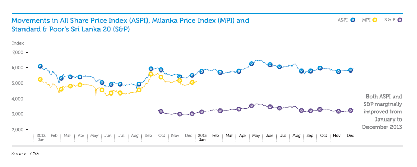 Mirroring the macro-economic conditions prevailing in the country, the Sri Lankan bourse experienced mixed results in 2013. Even so, net foreign investments in the market amounted to US $ 264 Mn. in 2013. Market capitalisation increased to Rs. 2.5 Tn. by the end of 2013 compared to Rs. 2.2 Tn. in 2012.
